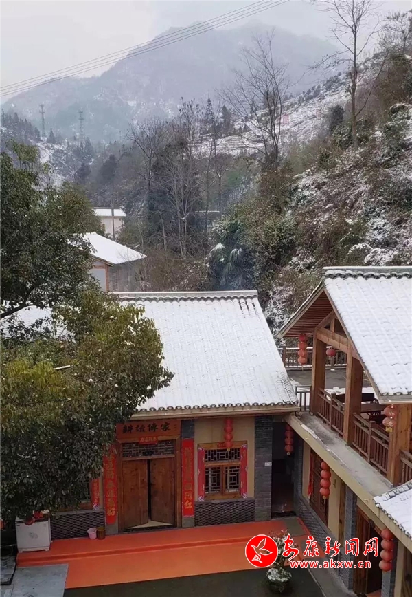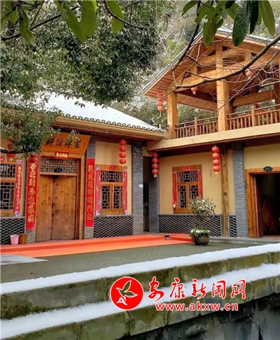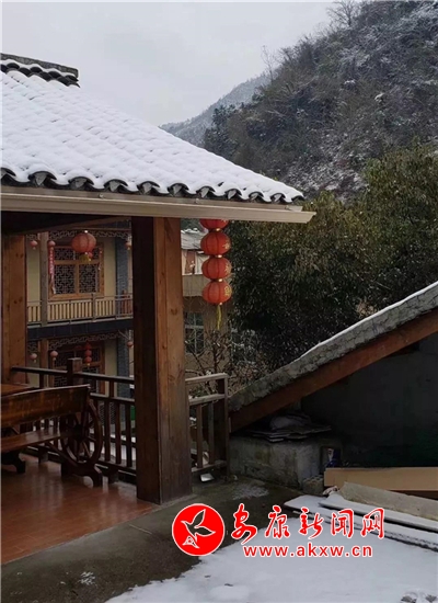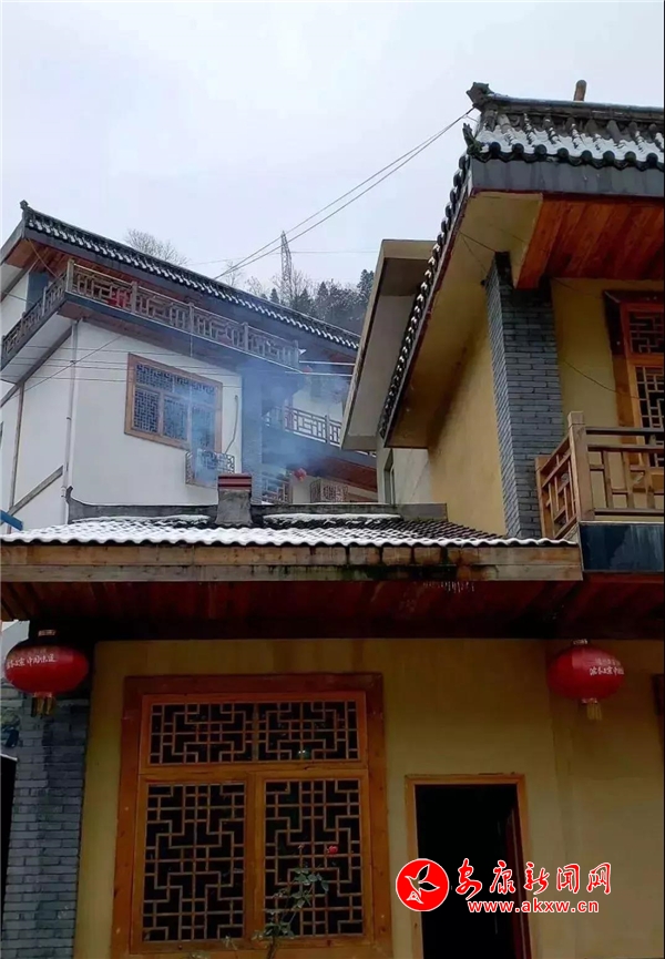 紅屋檐、紅格窗、紅木門、紅楹聯(lián)、紅地毯,還有那懸掛在屋頂上隨風舞動的紅燈籠,在瑟瑟寒風和茫茫白雪中,才顯其妖嬈展姿。這里,是紅與白色澤、熱與冷色溫的匯聚。紅,是一枝梅,是數(shù)盞燈,是萬家火,是山里人熱騰騰好日子的主色調(diào)……
