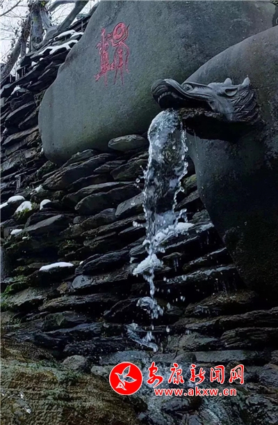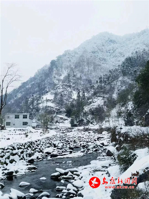 愈往深山走去,愈是銀裝素裹。發(fā)如雪,天作襯。色彩在這里失去了顏色,整個世界只剩下黑與白的構(gòu)圖。山澗中露出的黑巖,連綿著,將青絲的線條起伏蜿蜒地勾勒而出。山腳下一排排整齊的村民安置房,已顯出冬眠酣睡的樣子。樹林里帶著一層朦朧,在群山連綿中起伏著,為這雪天獻上了一幅絕美的水墨畫卷,也更增加了幾分神秘。