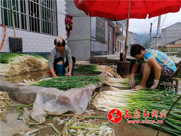 眼下,正值新蔥大量上市的季節(jié)。在安康市恒口示范區(qū)高樓村二組,筆者看到兩位老人正坐在門(mén)前臨時(shí)壘起水池邊包裝整理從地里挖回的新蔥,臉上充滿(mǎn)收獲的喜悅。