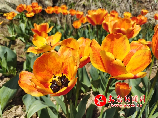 從遠(yuǎn)處望去,郁金香整整齊齊地排列著,陣陣微風(fēng)吹過,搖曳生姿。湊近看,郁金香花一朵挨著一朵,花瓣重疊,鮮艷得像要滴出水來。時不時還有幾只蝴蝶蜜蜂縈繞在花間,享受著春天帶來的絲絲甜蜜。在暖陽的照耀下,盛開的花朵隨春風(fēng)搖曳,不同顏色、不同品種的郁金香呈現(xiàn)出了極佳的視覺效果,花叢中,游客三五結(jié)伴,賞花、拍照,享受繁花繞膝之美。