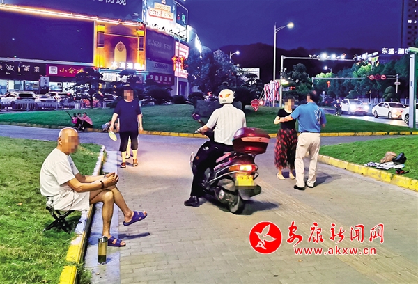6月18日,有市民帶著孩子在安康城區(qū)西津漢江大橋(三橋)南頭街心綠地內玩耍,旁邊就是“小草微微笑 請您旁邊繞”的公益廣告牌(圖1)。不時還有摩托車、電動車從人行道經(jīng)過(圖2),存在安全隱患。(記者 潘潤生 攝)