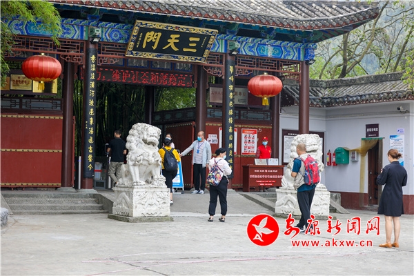 本網(wǎng)訊(記者 羅超)9月11日,在安康市香溪洞景區(qū)“三天門”外,不少市民、游客正在大門附近有序排隊,在不遠處,文明旅游相關(guān)標語設(shè)置在醒目位置,不少人依次通過閘機進入景區(qū)。