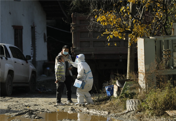 11月25日中午,忙完第一輪核酸采集,再接到流調(diào)通知單后,王康又立馬帶著他的“小伙伴”前往三里社區(qū)為居家隔離人員做核酸檢測,溝深路滑,因前幾日陰雨天氣路面濕滑,在上一處陡坡時(shí),車輪瞬間開始側(cè)滑,但是時(shí)間緊迫只能一試再試,大概試了20余次,在村上壓路車的幫助下,又試了兩次車子終于緩緩啟動(dòng)。喜悅之余他們就即刻趕往隔離群眾家中,“我們快一點(diǎn),再快一點(diǎn),就能讓等待的人少受一點(diǎn)冷”,這是“大白”們共同的心愿。