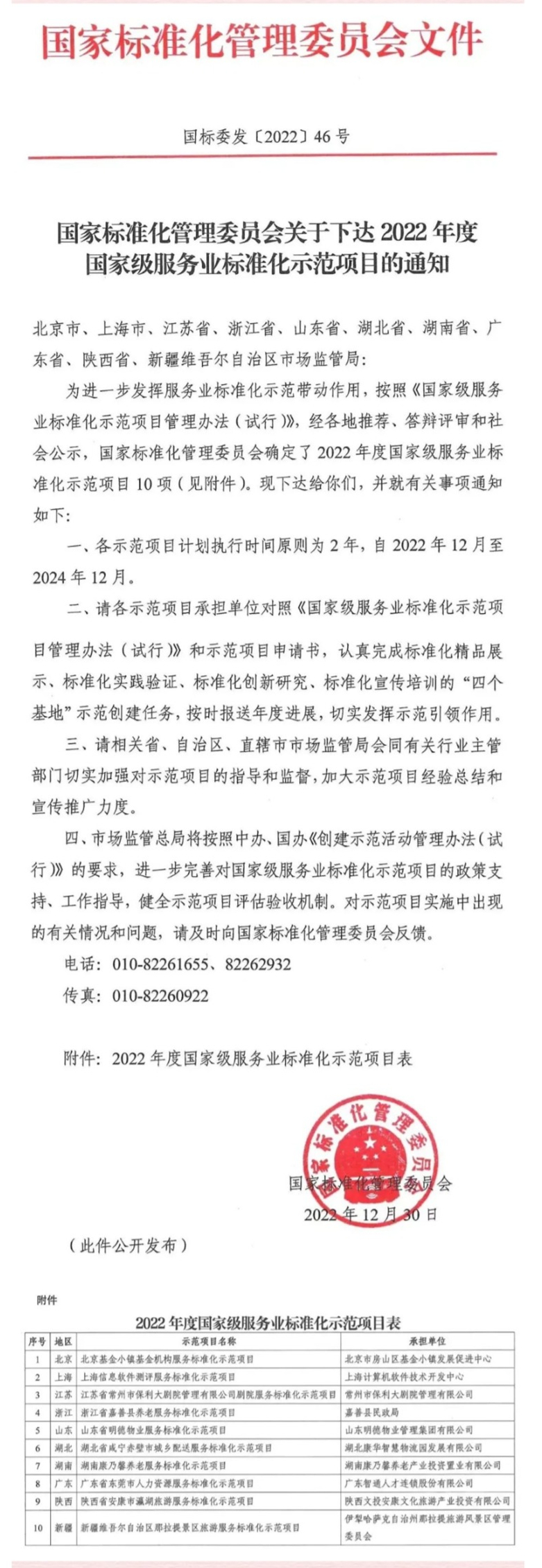 2022年12月30日,國家標(biāo)準(zhǔn)化管理委員會(huì)下達(dá)全國十個(gè)國家級(jí)服務(wù)業(yè)標(biāo)準(zhǔn)化示范項(xiàng)目,“陜西省安康市瀛湖旅游標(biāo)準(zhǔn)化示范項(xiàng)目”,經(jīng)過資審、文審、選拔、答辯、公示等程序,從全國一百余家單位中脫穎而出、光榮上榜,成為陜西省第一個(gè)國家級(jí)旅游標(biāo)準(zhǔn)化示范項(xiàng)目。