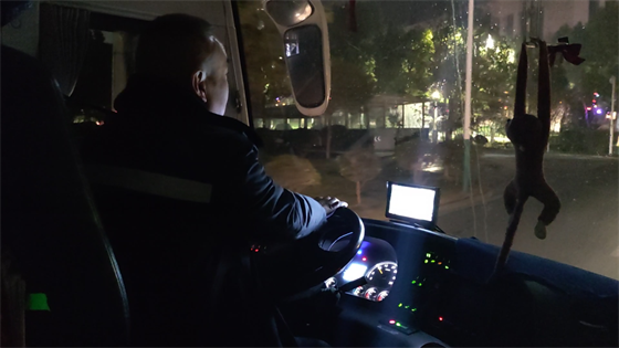 環(huán)顧車內(nèi),面包、牛奶、熱水……這里更像是他們的第二個(gè)家。我和司機(jī)師傅開玩笑說:“今天出發(fā)夠早的啊,太陽(yáng)都還沒上班呢?!彼緳C(jī)輕描淡寫的說:“這算晚的了,以前去更遠(yuǎn)的鎮(zhèn)上,四五點(diǎn)就要出發(fā)?!彼p眼筆直的看向前方,仿佛看見了比路更多的東西,而在我眼里,那不過是車燈照不到盡頭的一片迷霧。