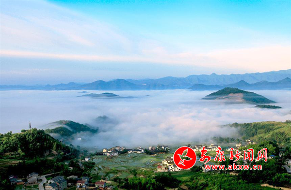 在茫茫山野間,在縹緲云霧間,上萬(wàn)株桃花好似一夜怒放,大片大片粉白染遍了山頭,宛如一場(chǎng)朦朧的夢(mèng)。