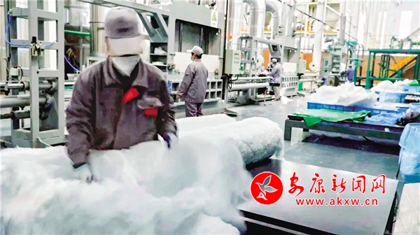 在恒口示范區(qū)工業(yè)產(chǎn)業(yè)園區(qū)的恒康欣石玻璃纖維有限公司1號(hào)生產(chǎn)線廠房,我們就見(jiàn)證了玻璃纖維“化石為寶”的過(guò)程。轟鳴的機(jī)器噴出一層層白色的軟棉花,讓人感覺(jué)這是一家紡織企業(yè),其實(shí)這是一家高科技材料公司,專(zhuān)干“化石為寶”“點(diǎn)石成金”的活。