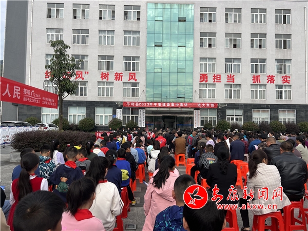 為了增強宣傳教育效果,該校還組織師生參與了“平利縣2023年平安建設(shè)集中宣講——進大貴鎮(zhèn)”活動,要求人人當好“平安大貴代言人”、正確接聽12340電話?,F(xiàn)場分發(fā)了宣傳資料,同時引導參會人員觀看了精美的平安建設(shè)宣傳展板,將平安建設(shè)的知識點以圖文并茂的形式呈現(xiàn)給師生和群眾,幫助他們更好地理解和記憶。