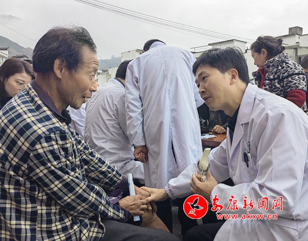 “血糖結(jié)果出來了,數(shù)值太高,一定要多注意飲食。”內(nèi)分泌科主任王占志提醒前來問診的陳緒春控制每餐主食的量,增加蔬菜攝入量。醫(yī)生們?yōu)楝F(xiàn)場群眾免費測量血壓血糖,進行心肺聽診,發(fā)放健康知識宣傳冊。用接地氣的方式為群眾講解常見病、多發(fā)病、慢性病的康復(fù)護理等知識,普及傳染病防治常識和健康生活指南,科普腦卒中、胸痛、創(chuàng)傷等相關(guān)危急癥的處置常識,引導(dǎo)群眾關(guān)注健康、合理膳食、適當(dāng)運動,養(yǎng)成科學(xué)、健康的生活方式。集中義診后,醫(yī)生團隊還對行動不便的村民進行入戶走訪,解決殘疾鑒定等難題。