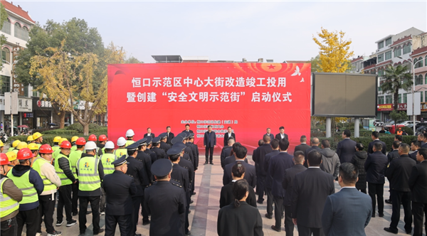 11月22日,恒口示范區(qū)隆重舉行中心大街改造竣工投用暨“創(chuàng)建安全文明示范街”啟動(dòng)儀式。