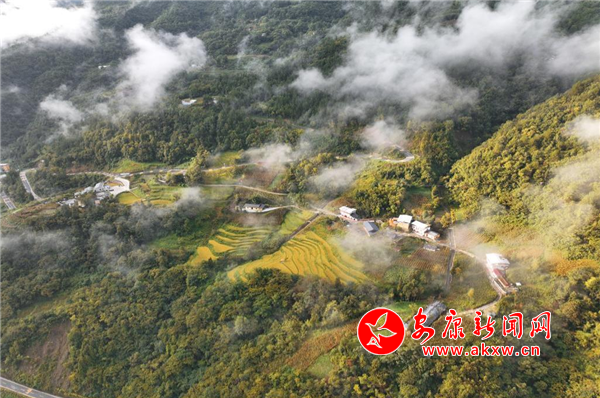 大湖溪位于鎮(zhèn)坪縣城關(guān)鎮(zhèn)友誼村,距離縣城大約半小時(shí)車程。沿207省道順南江河而下,穿過南江湖大壩就到了谷口。一條嶄新的柏油馬路沿溪流伸向大山深處,茂密的森林覆蓋著山巒,星星點(diǎn)點(diǎn)的農(nóng)舍、民宿集群和土地,若隱若現(xiàn)地掩映在云霧繚繞的群山之間,許多保存完整的巴山古老傳統(tǒng)民居石板屋,炊煙裊裊,與淡淡的晨霧相互交織,構(gòu)成了一幅渾然天成的水墨畫卷。放飛手中的無人機(jī),我貪婪地捕捉這一幅幅夢幻般的景致。