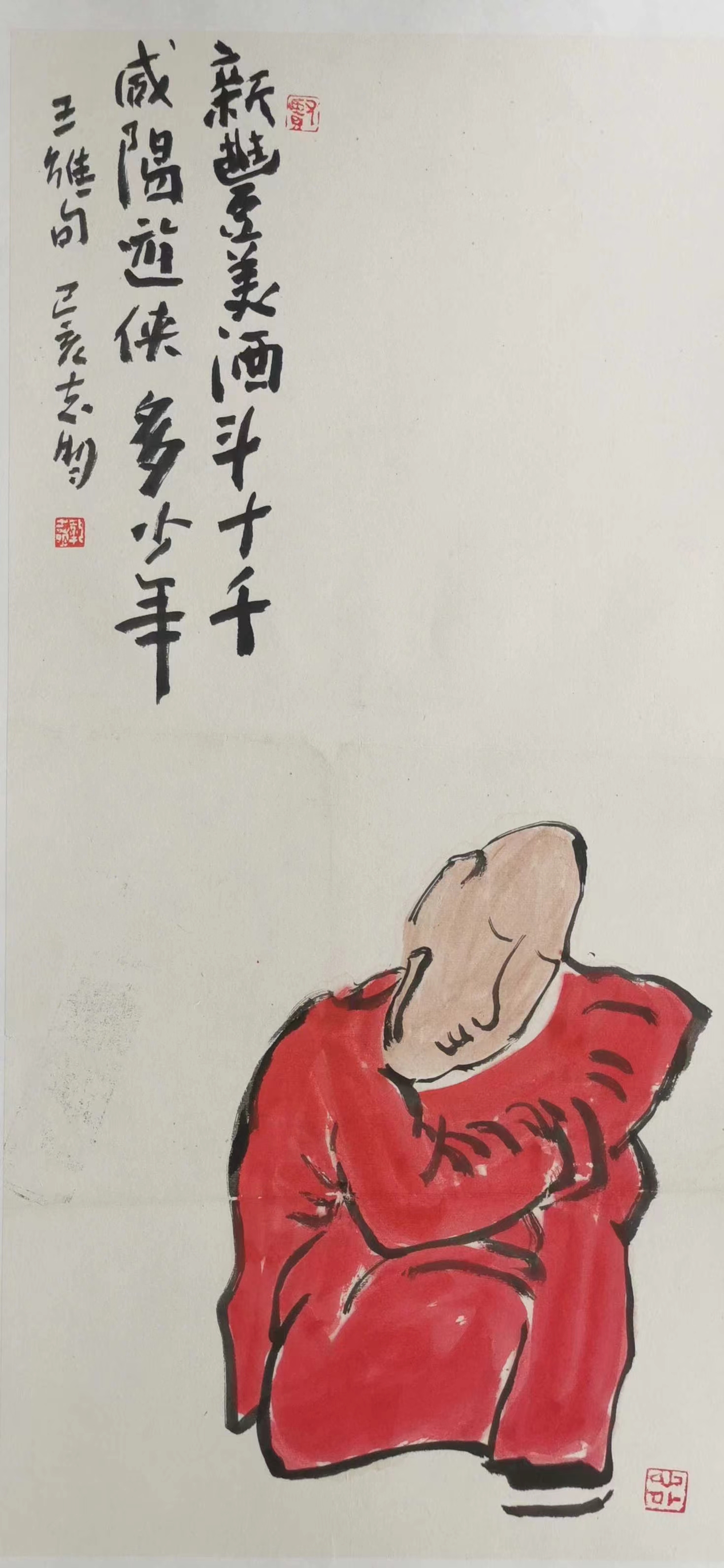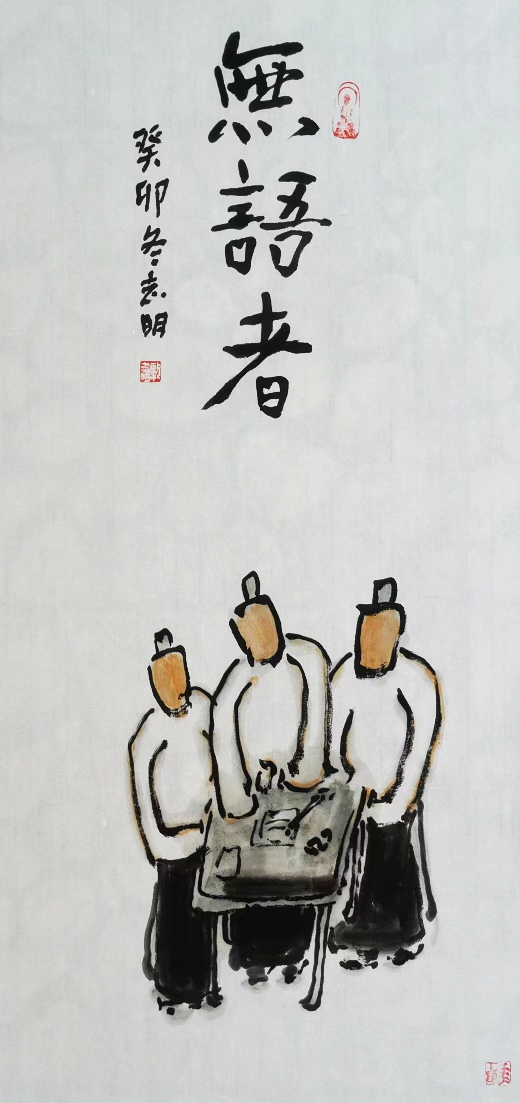 記得那一年的端午節(jié),鞏志明發(fā)來(lái)短信,是他寫(xiě)的一首詩(shī):綠粽黃酒聚江邊,白帆紅燭祭屈原。三千清淚流不得,九萬(wàn)渾念飄上天。誰(shuí)有郁悶誰(shuí)散淡,何謂圓滑何忠奸。十丈風(fēng)塵古今在,談笑真?zhèn)位聼煛?017年,我遷新居,鞏老師為我寄來(lái)小品畫(huà)《福到眼前》,我很喜歡,并懸掛至新居玄關(guān)。這些年,鞏志明老師常做影展畫(huà)展策劃及影評(píng)講座,自已也臨池不輟,水墨丹青,寄情抒懷,他的文人小品有思想性、有創(chuàng)造性。雖畫(huà)的是松風(fēng)明月,小舟流水或遠(yuǎn)古人物,但都寄托了他當(dāng)下的心境,以消塊壘。誠(chéng)如有人評(píng)論他為“吾師真文人,畫(huà)亦真性情!”他不僅只是身居畫(huà)室的怡情文人,他亦是心憂(yōu)天下的豪俠。面對(duì)世間不平事,他也是激揚(yáng)文字,揮斥方遒!在功利的當(dāng)下,鞏志明尤其顯得難能可貴!?