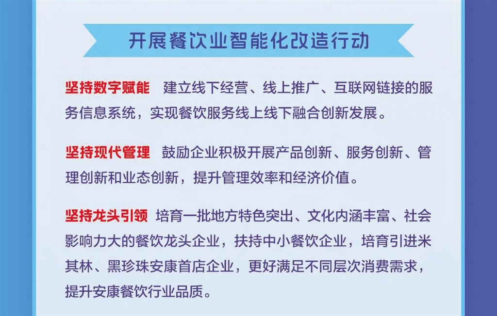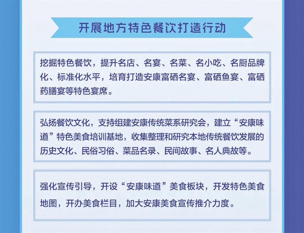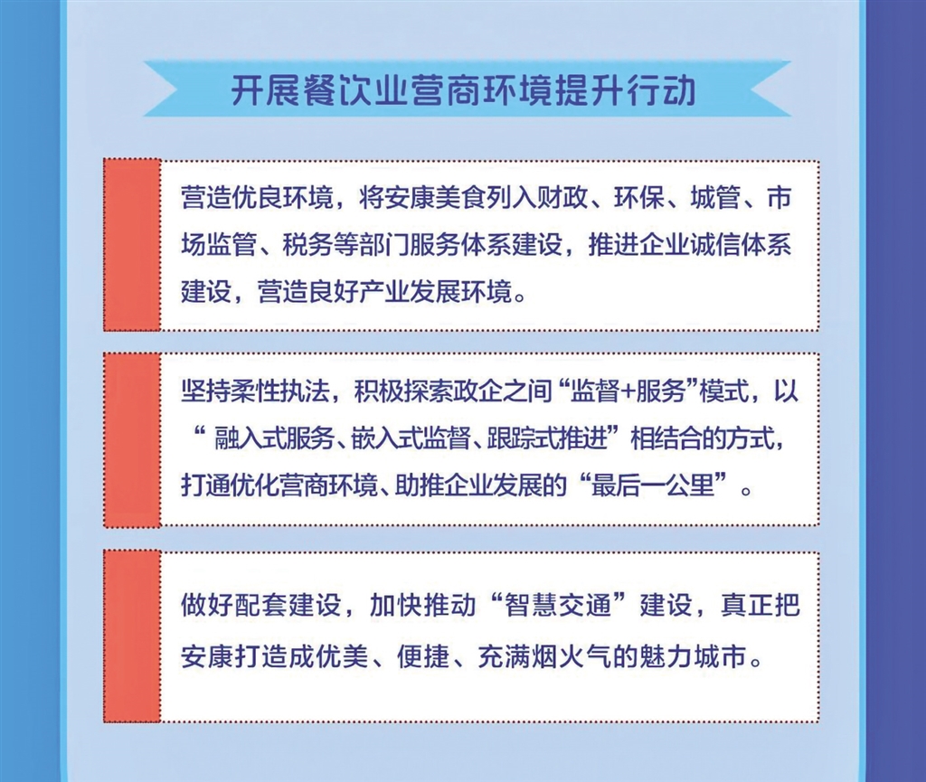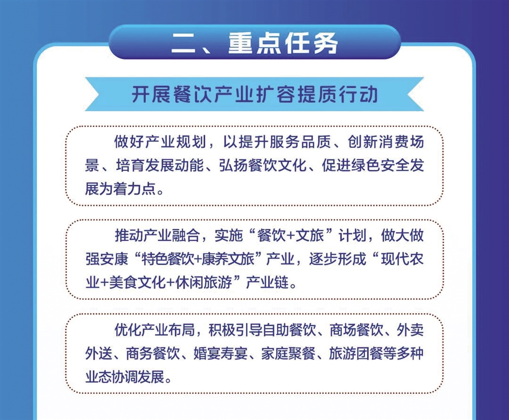 日前,安康市商務局等11部門聯(lián)合發(fā)布《關于進一步推進全市餐飲業(yè)高質量發(fā)展的實施意見》,本期帶您一圖讀懂其重點任務。