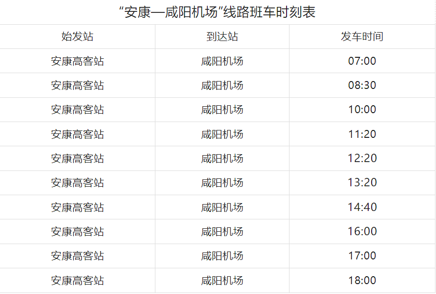 “安康—咸陽機(jī)場”客運線路發(fā)車時間調(diào)整