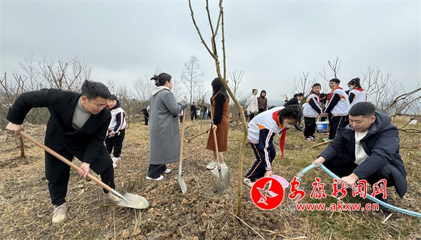 活動伊始,綠化公司的工作人員詳細地講解了植樹的要點。活動現(xiàn)場,大家分工協(xié)作,相互配合,放苗扶樹、揮鍬填土、踩土固苗、提水灌溉……充分發(fā)揚了團結(jié)協(xié)作、吃苦耐勞的優(yōu)良作風(fēng)。在大家的共同努力下,一棵棵小樹屹立在春風(fēng)中,成為這個春天又一道亮麗的風(fēng)景。隊員們還親手懸掛小樹牌,許下自己美好心愿。?