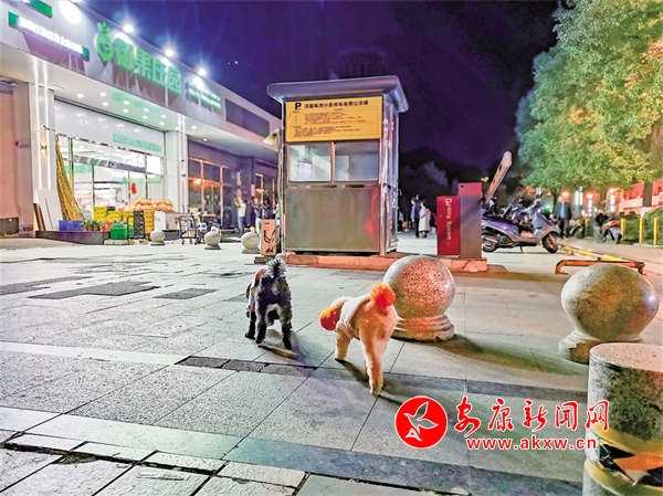 3月12日,在安康育才西路,有市民遛狗不牽繩。 記者 潘潤(rùn)生 攝