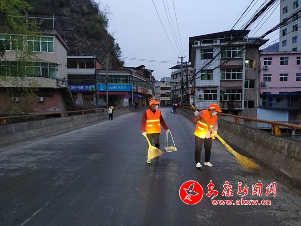環(huán)衛(wèi)隊伍清掃集鎮(zhèn)主街道