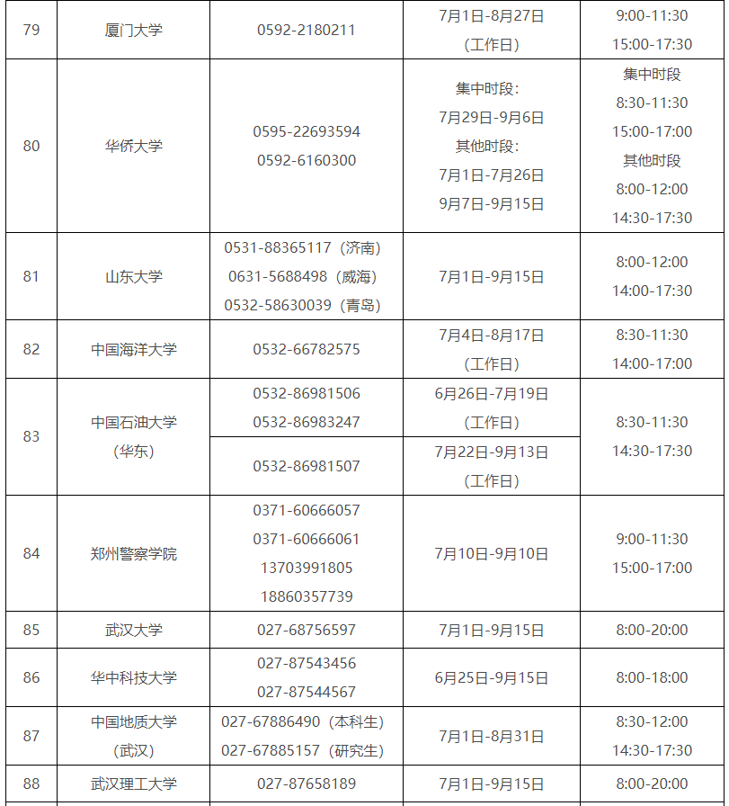 各省(自治區(qū)、直轄市)和中央部門所屬高校同步開通了熱線電話,電話號(hào)碼與開通時(shí)間可查看匯總表。