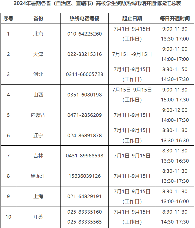 2024年暑期教育部高校學(xué)生資助熱線電話7月1日開通