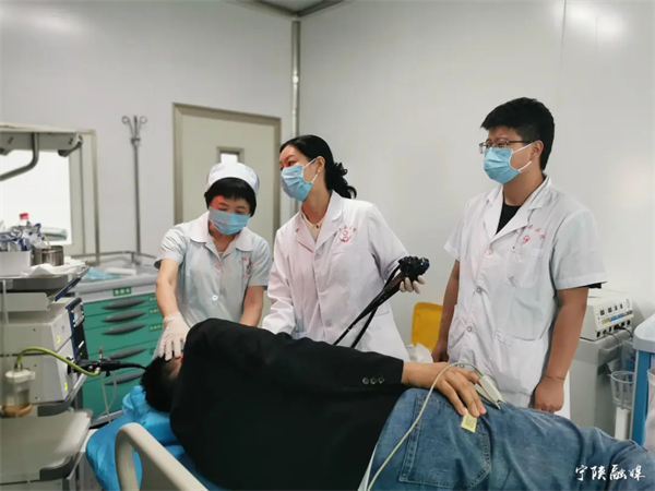 7月8日,走進寧陜縣醫(yī)院內(nèi)鏡室,門外已有三、四名患者排隊。診室內(nèi),金壇區(qū)第一人民醫(yī)院消化內(nèi)科副主任醫(yī)師潘良正在為一名患者做胃鏡。檢查結(jié)束后,潘良詳細詢問了患者的其他癥狀并開出藥方,叮囑患者注意飲食,按時服藥。