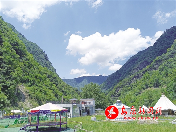 立秋這天,為了避暑,我和友人結(jié)伴,頂著38度的高溫從安康城區(qū)出發(fā),經(jīng)平鎮(zhèn)高速公路,一個半小時到達(dá)干洲河上游的五眼泉露營基地,剛好正午12點(diǎn)半,而這里的室外溫度只有22度。打開車門,山風(fēng)一吹,一身暑氣頓時退去,隨之而來的是山風(fēng)中的樹木清香、山花濃香,以及河風(fēng)吹來的溫潤之感。