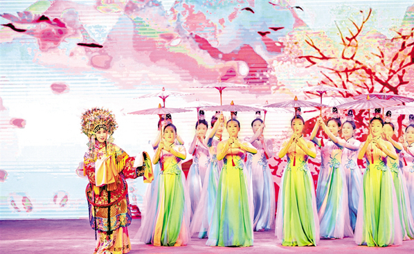 巡演活動現(xiàn)場,演員表演漢劇歌伴舞《大美安康》。楊寧 攝?