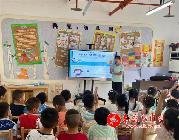 在第27屆全國推廣普通話宣傳周之際,旬陽市第一幼兒園圍繞“加大推普力度,筑牢強國語言基石”深入宣傳《國家通用語言文字法》,進(jìn)一步增強幼兒語言文字規(guī)范意識和推普參與意識,營造敢說、想說、會說的語言環(huán)境,推進(jìn)幼兒園的普通話教育。(通訊員 王苗)?