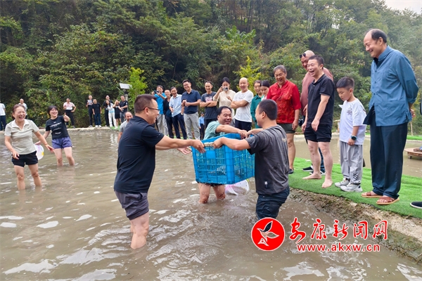 活動現(xiàn)場,進行了垂釣、徒手摸魚、剝玉米、刨土豆等趣味農(nóng)事比賽。徒手摸魚是“熱門賽事”,在場地中,參賽者們目光鎖定目標,隨著哨聲響起,身手矯健地追逐著不斷跳躍的魚,不一會兒每個選手都抓住了“心選目標”。另一邊,剝玉米比賽也正在緊張有序地進行著,參賽者們鉚足干勁,聚精會神、爭分奪秒將手中的玉米棒“脫粒歸倉”。與此同時,垂釣、刨土豆也已精彩開賽,現(xiàn)場加油聲和歡笑聲不絕于耳,大家都沉浸在勞動的熱情和豐收的喜悅之中。