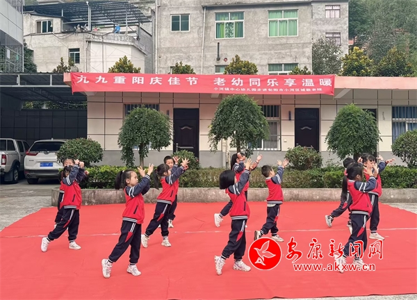 為弘揚(yáng)中華民族尊老敬老的傳統(tǒng)美德,培養(yǎng)幼兒尊老、敬老、助老、愛老的美好品質(zhì),在重陽節(jié)來臨之際,10月10日,旬陽市小河鎮(zhèn)中心幼兒園組織孩子們,走進(jìn)小河區(qū)域敬老院,開展“九九重陽慶佳節(jié),老幼同樂享溫暖”實(shí)踐活動(dòng)?;顒?dòng)中,孩子們?yōu)闋敔斈棠太I(xiàn)上了精心準(zhǔn)備的歌舞表演,老人們和孩子們一起系上大紅綢,扭起秧歌來,大家一起進(jìn)行了有趣的游戲。孩子們用稚嫩的動(dòng)作,甜美的笑容,給老人們平淡的生活里帶去了歡樂。(通訊員 劉曉玲 李冬梅)?