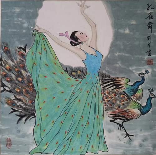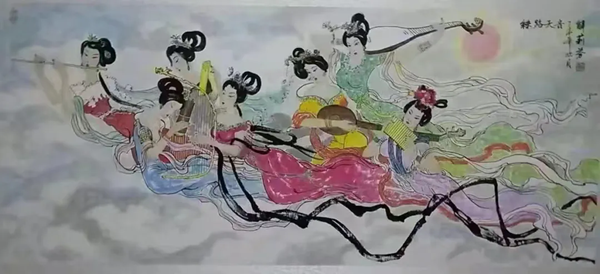 解大姐是陜北人,性格開朗、直率,說話中間或帶出一些濃重的陜北口音。雖說她主業(yè)從于政界,但她微笑的背后卻潛藏著不可掩飾的藝術天賦,揮發(fā)著令人奪目的藝術才情。繁雜的政務工作之余,她創(chuàng)作不輟,堅持不懈,居然在多個藝術門類收獲頗豐,好評連連。寫小說,她寫出幾十萬字的長篇出版發(fā)行;寫劇本,竟拍成了電影予以公映;學國畫,亦讓藝術界的大咖贊口不絕。我雖不才,空有浮名,但深耕藝界多年,對于其中的好賴還能分出一二。我感到,一個人的人品和藝品基本一致,解大姐的藝術,是扎根于她熟悉的陜北大地的藝術,是生長在山峁峁上經歷風霜雨雪的藝術,就像那陜北倔強的疙瘩柳,散發(fā)著對土地對生活的親近和熱情,對人生價值實現的不屈和追求??吹剿膰嬓伦?,有陜北剪紙等民間藝術的滋養(yǎng)和影響,真切而樸實。她的飛天人物系列,泥古而不落窠臼,使我想到疙瘩柳條隨風擺動的婀娜風姿,溫溫潤潤,令人遐思和向往;她的花鳥畫作,使我想到陜北山野一片蒼茫之間,一朵兩朵盛開的山丹丹花,嬌艷得令人不忍觸手;她的山水畫作,又猶如陜北山原上嫩黃的棗花,洋溢著撲面而來的質樸、清新和率真之氣。