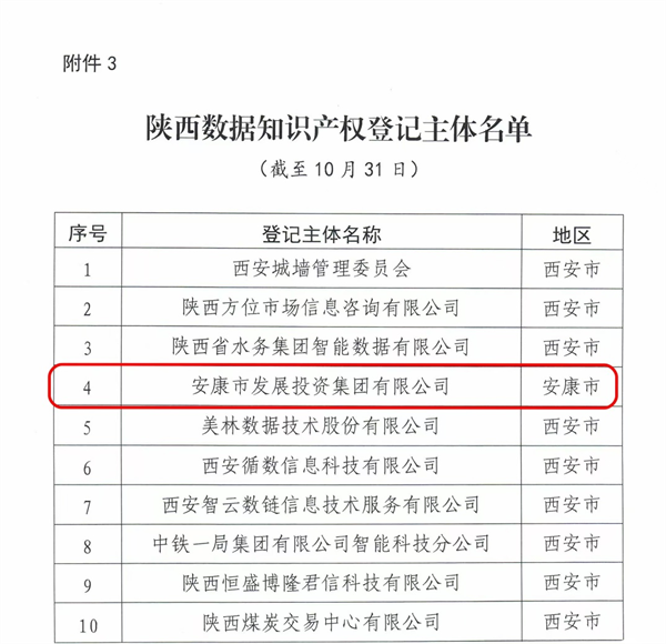 本網(wǎng)訊(通訊員 汪金金)11月15日,陜西省數(shù)據(jù)知識產(chǎn)權(quán)試點成果發(fā)布暨推進會在西安隆重舉行。市發(fā)投集團作為陜南唯一一家數(shù)據(jù)知識產(chǎn)權(quán)登記代表企業(yè)接受了頒發(fā)的數(shù)據(jù)知識產(chǎn)權(quán)登記證書。