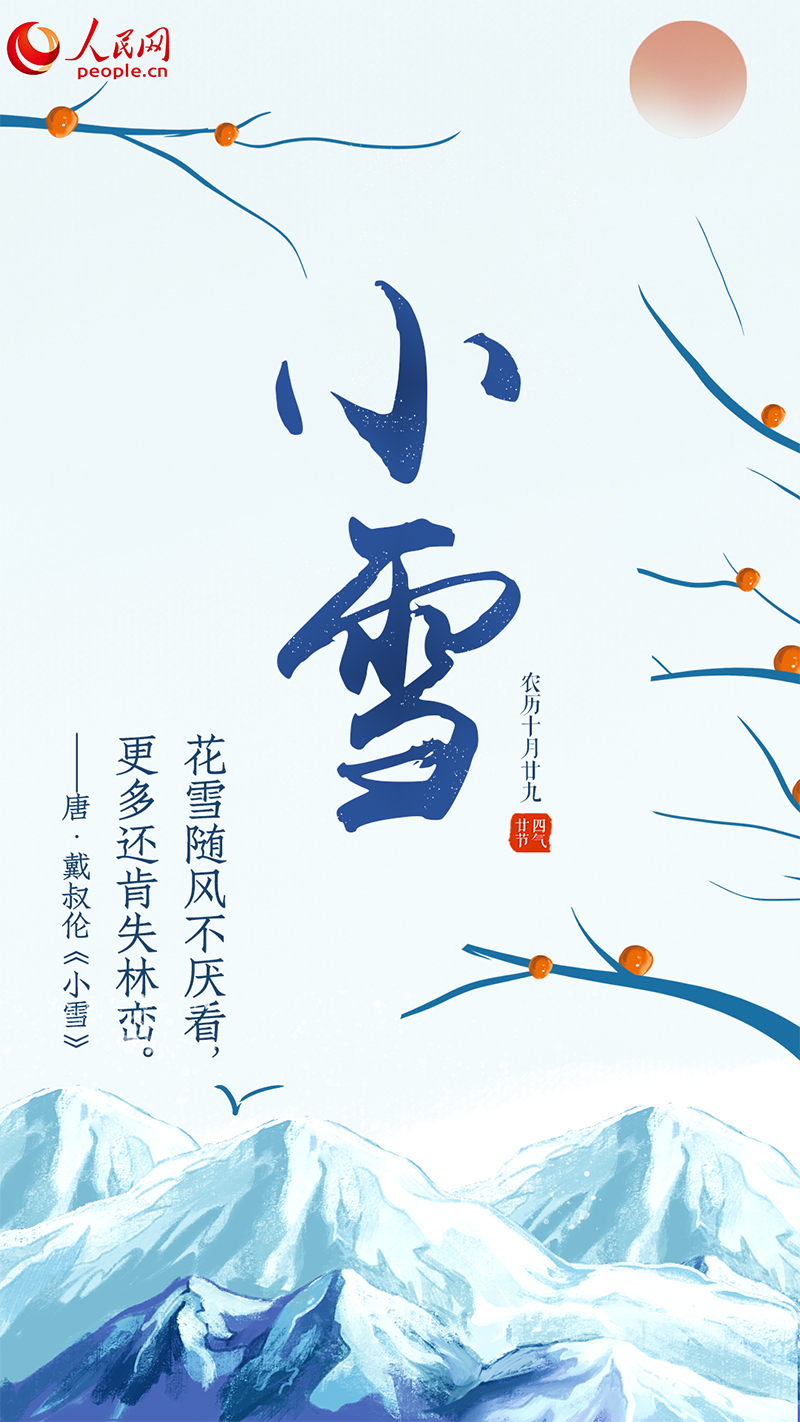 小雪之時,雖寒氣來襲,冷風(fēng)直撲,但也能從中找到一份獨(dú)特的浪漫?!盎ㄑ╇S風(fēng)不厭看,更多還肯失林巒”,唐代詩人戴叔倫看著窗前飄揚(yáng)的花雪,洋洋灑灑飛到山林之中,甚是好看;“滿城樓觀玉闌干,小雪晴時不共寒”,宋代詩人黃庭堅(jiān)看到下雪頓覺開心,天晴后也沒那么寒冷;“小雪未成寒,平湖好放船”,宋代詩人韓維發(fā)現(xiàn)小雪雖至,湖面還未結(jié)冰,尚可乘船游湖、觀賞美景。