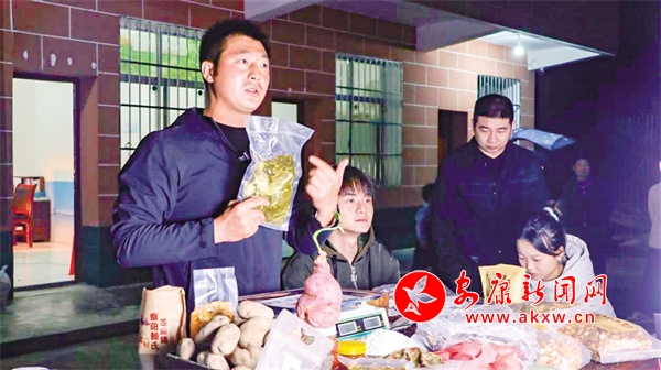 據(jù)了解,為了豐富產(chǎn)品種類,直播前夕吳勇就帶著駐村隊(duì)員以及村上干部,針對腿腳不便的老人進(jìn)行挨家挨戶收集登記,統(tǒng)一代賣,能到現(xiàn)場的群眾則自己帶著山貨到現(xiàn)場現(xiàn)稱現(xiàn)賣。根據(jù)當(dāng)天后臺數(shù)據(jù)分析,當(dāng)晚最高峰直播間人數(shù)達(dá)200多人,帶到現(xiàn)場的所有農(nóng)特產(chǎn)品一售而空,實(shí)現(xiàn)交易金額4319元,良好的開端不僅讓吳勇直直呼沒想到,就連一直等到下播的群眾也感到不可思議。