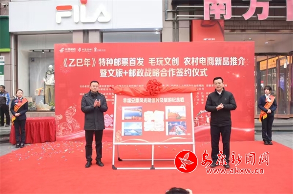 首發(fā)活動在安康學(xué)院學(xué)生一支歡快雀躍的串燒街舞中拉開序幕,安康郵政今年將己發(fā)行的生肖郵票結(jié)合安康地方文化宣傳元素,創(chuàng)意設(shè)計(jì)《生肖集?!芳乜?,現(xiàn)場為《生肖集福》集藏卡、龍年系列毛玩產(chǎn)品新品發(fā)布、“味在安康”電商禮盒等揭幕,進(jìn)一步推動全市文旅事業(yè)發(fā)展。