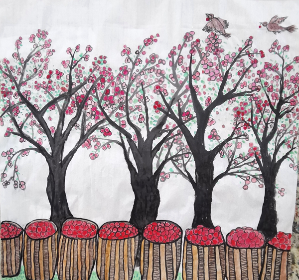 學(xué)校國(guó)畫社團(tuán)的孩子們,經(jīng)過(guò)兩天的緊張培訓(xùn)、繪制草圖、精心創(chuàng)作,十余名學(xué)生畫出了美麗鄉(xiāng)村的豐收?qǐng)鼍?,畫出了孩子們美好生活的快?lè)情趣,也畫出了漢調(diào)二黃戲劇人物水墨畫印象,從多角度贊美了美麗家園、幸福安康。在安康兒童美育專家宋安平和鄭字堂、王彬等老師的精心輔導(dǎo)下,孩子們的國(guó)畫作品,將選送參加中央美術(shù)學(xué)院少兒美術(shù)研究中心主辦的展覽。