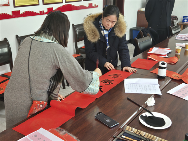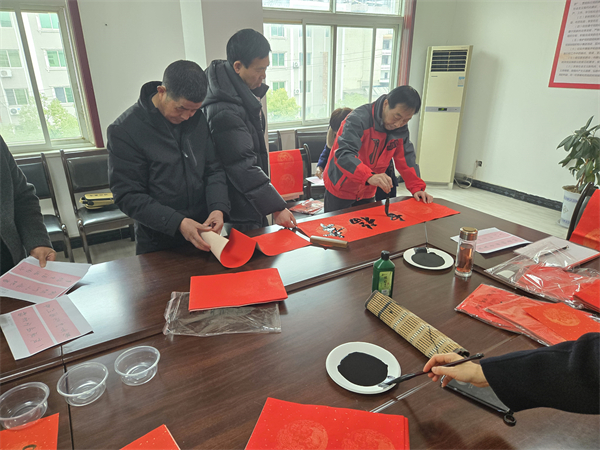 “無聯(lián)不成春,有聯(lián)春更濃?!睘楹霌P中華優(yōu)秀傳統(tǒng)文化,營造歡樂祥和的節(jié)日氛圍,中渡社區(qū)新時代文明實踐站特別舉辦了“墨香四溢迎新春,福滿中渡暖人心”主題活動。活動現(xiàn)場,墨香撲鼻,熱鬧非凡。社區(qū)邀請到了書法協(xié)會的老師們,他們個個滿懷激情,揮毫潑墨。在紅彤彤的春聯(lián)紙上,“一帆風順吉星到,萬事如意福臨門”“喜居寶地千年旺,福照家門萬事興”等飽含美好寓意的春聯(lián)一氣呵成。