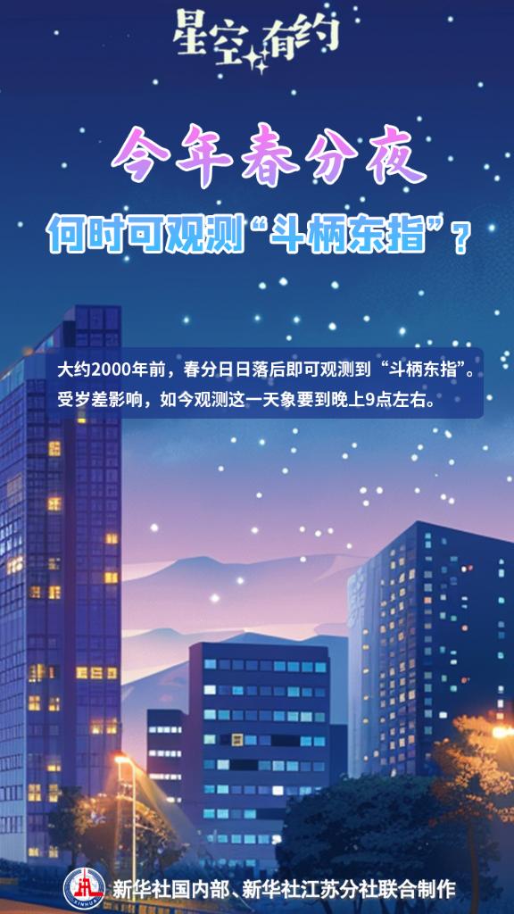3月20日將迎來春分節(jié)氣。這一時(shí)節(jié)草長(zhǎng)鶯飛、花滿枝頭,天上的星斗也指示著春天的到來。我國(guó)古代有“斗柄東指,天下皆春”的說法,意思是當(dāng)夜幕降臨時(shí),看到北斗七星的斗柄指向東方,意味著春分時(shí)節(jié)到來。