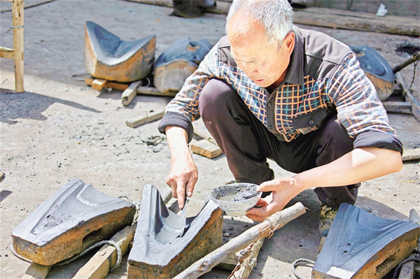宋祖新的叔祖父是當(dāng)年鏵廠的“掌勺”師傅之一,在一次次觀看大人們操作中,他也學(xué)會了從制模到熔鐵澆鑄一整套鑄鏵技術(shù)。隨著農(nóng)業(yè)科技的發(fā)展,傳統(tǒng)的鐵鏵制作工藝逐漸被機械化生產(chǎn)所取代,但在陜南一些山區(qū)坡地仍延續(xù)著犁鏵耕作方式?!扒靶┠辏鄶?shù)人都選擇外出務(wù)工,種地的少,好多年沒有開爐鑄鏵了,很多年輕人都沒有親自體驗過制作過程,聽說我們這兒又開始鑄鏵,連縣城的人都趕來看稀奇!”宋祖新說。