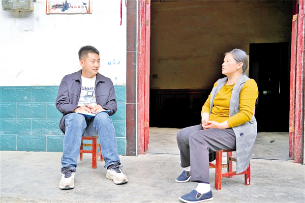 彭方睿入戶(hù)進(jìn)行政策宣傳,并了解興坪村農(nóng)戶(hù)收入情況