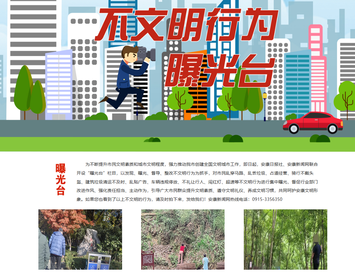安康新聞網(wǎng)繼續(xù)充分發(fā)揮輿情監(jiān)測和輿論監(jiān)督作用,以高度負(fù)責(zé)的態(tài)度,及時(shí)監(jiān)測上報(bào)重大輿情信息。開設(shè)《不文明行為曝光臺》輿論監(jiān)督專欄,集中曝光身邊的不文明現(xiàn)象、行為,發(fā)布消息報(bào)道19篇,引導(dǎo)市民群眾自覺規(guī)范文明行為,主動融入城市文明創(chuàng)建熱潮,為提升市民文明素質(zhì)和城市文明程度貢獻(xiàn)媒體力量,體現(xiàn)地方黨媒的責(zé)任與擔(dān)當(dāng)。