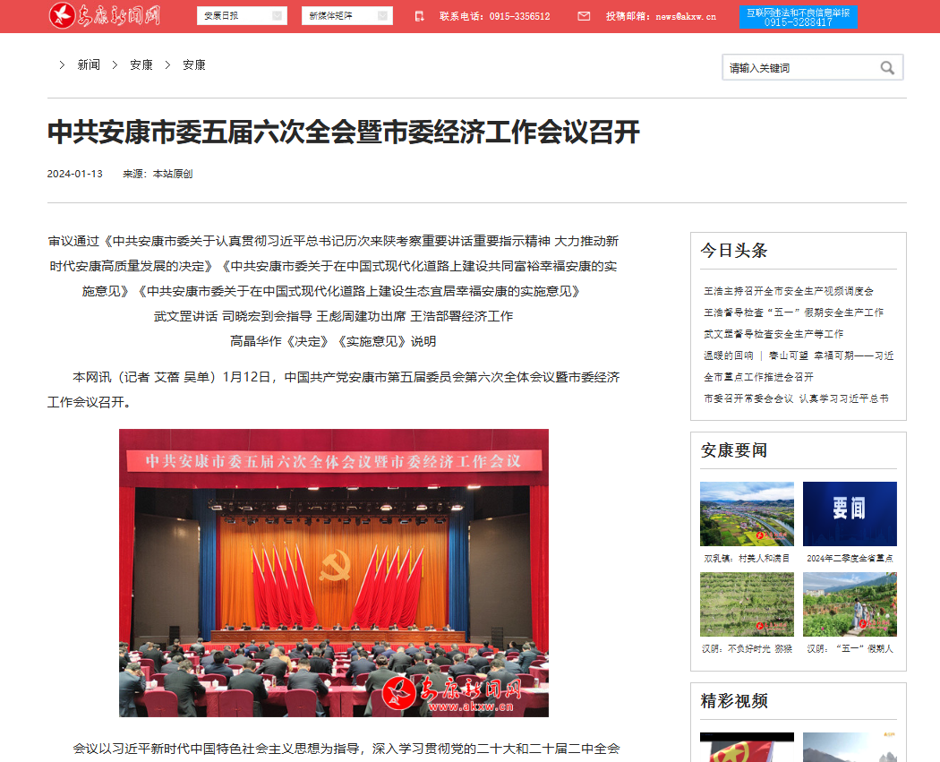 《中共安康市委五屆六次全會暨市委經(jīng)濟(jì)工作會議召開》(2024-01-13發(fā)布)