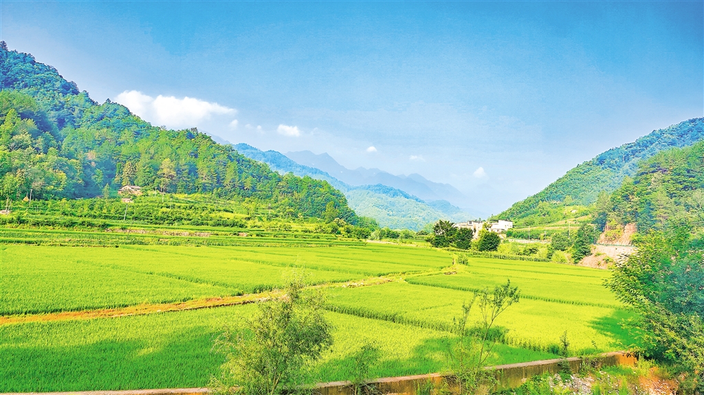 盛夏,旬陽市雙河鎮(zhèn)卷棚村,稻田、村莊、青山相映成趣,和美鄉(xiāng)村風光如畫。潘文進 攝