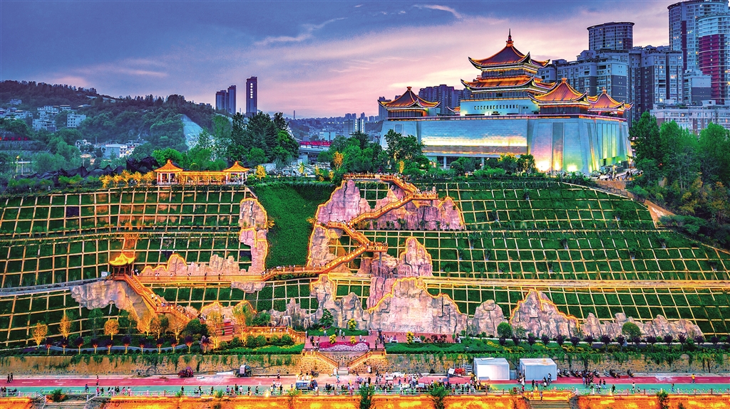 夜幕降臨,安康博物館南側(cè)經(jīng)過(guò)生態(tài)修復(fù)的山體景觀,靈動(dòng)的山體燈光和博物館景觀照明勾勒出別致的城市夜景,吸引市民游客前來(lái)游玩“打卡”。(安康日?qǐng)?bào)資料圖)