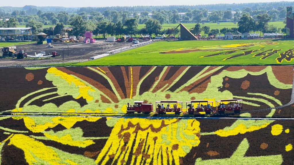 在北大荒集團(tuán)閆家崗農(nóng)場(chǎng)的“藝術(shù)稻田”里,6幅稻田畫在165畝稻田中徐徐展開(kāi)——冰雪畫卷盡顯百年冰城魅力,四季生態(tài)畫卷演繹著四季浪漫;萌寵卡皮巴拉,傳遞出平靜與治愈的力量;后羿射日、女媧補(bǔ)天、神筆馬良這些經(jīng)典神話在稻田中煥發(fā)新生,與多彩的稻浪共同演繹著中華文明的永恒魅力。100多公里外,北大荒集團(tuán)四方山農(nóng)場(chǎng)的玉米田,青紗帳漸染金黃,工作人員張昊正遙控?zé)o人機(jī),巡航監(jiān)測(cè)作物成熟度,科技與傳統(tǒng)在此刻共舞。