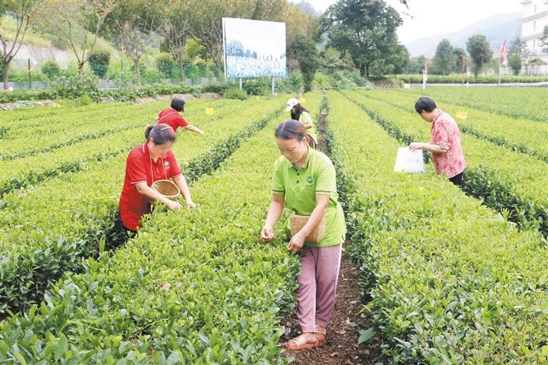 九月四日,在位于平利縣長安鎮(zhèn)中壩村的標準化茶園內(nèi),茶農(nóng)采摘秋茶。 陜西日報記者 董劍南攝