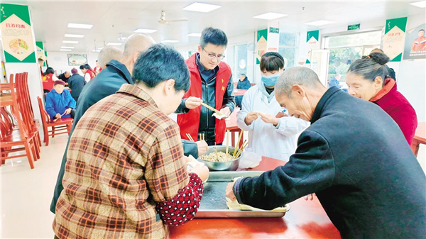 10月28日,嵐皋縣城關(guān)鎮(zhèn)西坡社區(qū)舉辦了“重陽敬老情融鄰里·壽面?zhèn)髋缇畚髌隆敝黝}活動(dòng)。廖霖 攝