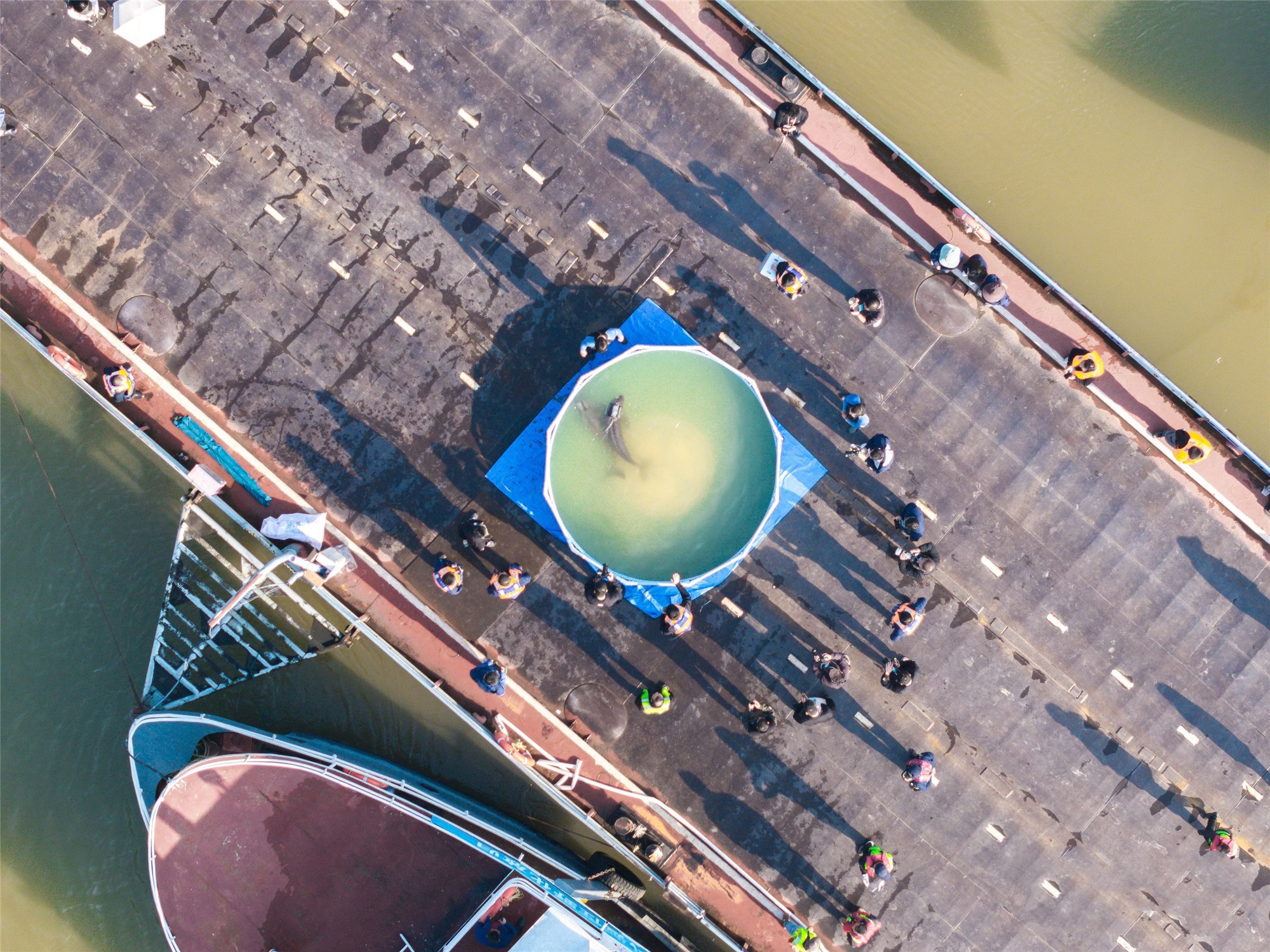 11月14日,在湖北洪湖市長江洪湖段,兩頭經(jīng)過野化訓(xùn)練的長江江豚被放歸長江干流,中科院水生所研究人員正實(shí)時(shí)監(jiān)測。這已經(jīng)是我國第二次開展這樣的野化放歸行動。