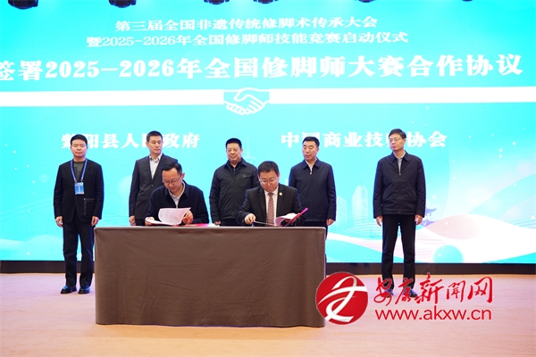 簽約與啟動儀式上,紫陽縣人民政府與中國商業(yè)技師協(xié)會簽署2025—2026年全國修腳師大賽合作協(xié)議,并共同啟動大賽。紫陽縣人社局與揚州市陸琴腳藝職業(yè)培訓(xùn)學(xué)校簽訂修腳技能培訓(xùn)協(xié)議;現(xiàn)場還舉行了會旗交接儀式,確定了下一屆承辦單位。