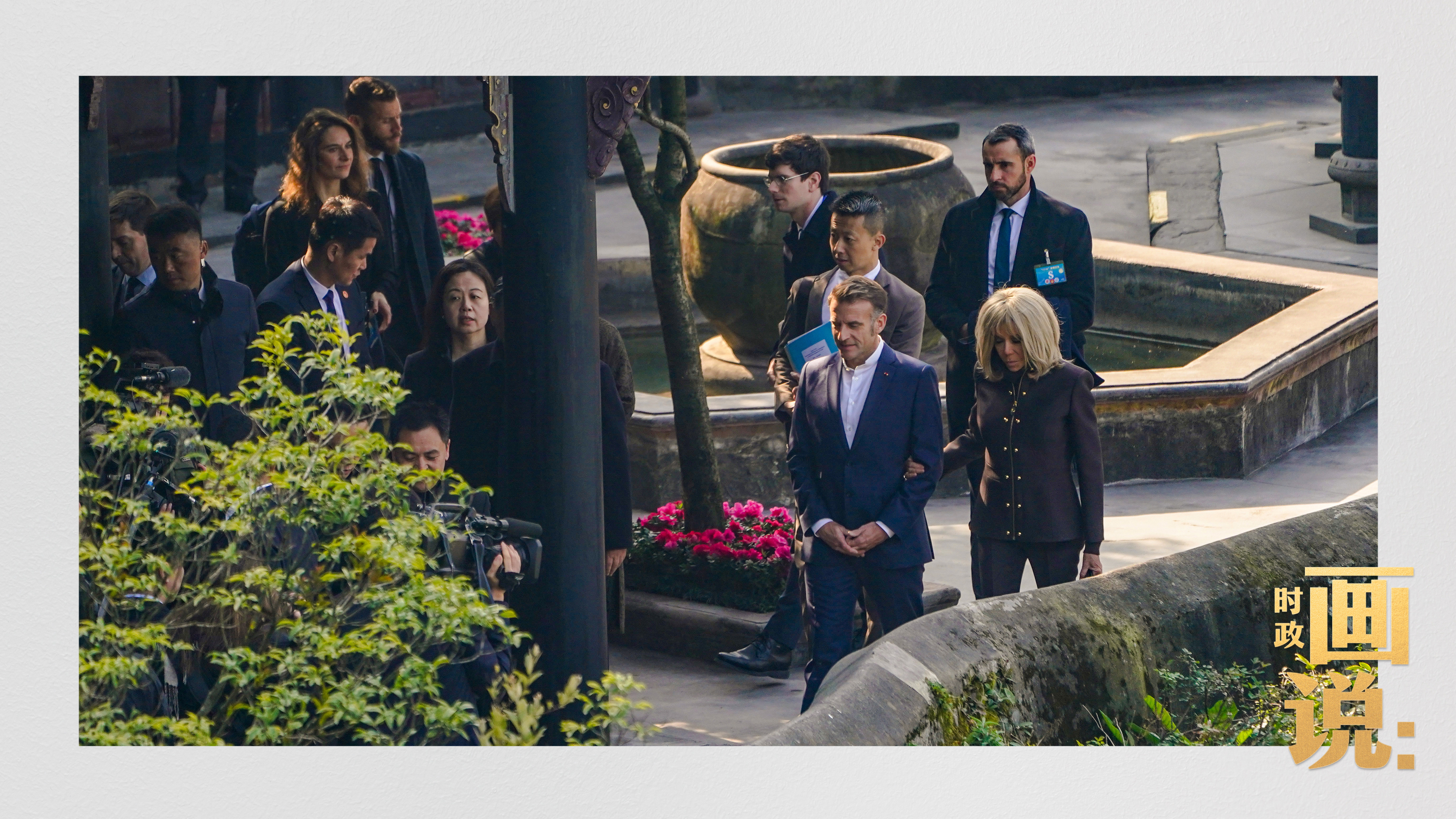 △習(xí)近平和夫人彭麗媛同馬克龍夫婦在都江堰進行友好交流