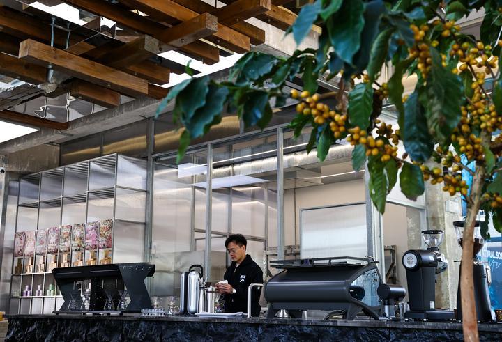 2025年12月10日,旅居云南的韓君瑋在位于昆明的南來盛咖啡店內(nèi)制作咖啡。韓君瑋自清華大學畢業(yè)后,已在咖啡行業(yè)耕耘十余年。2024年,他受聘成為云南一家老字號咖啡品牌的品牌總顧問,從此投身到云南咖啡的產(chǎn)品研發(fā)和品牌推廣工作中。一年多來,他每月都會來到昆明,短則幾天,長則數(shù)周,開啟了一種“半旅居、半工作”的生活模式。“云南風景優(yōu)美、氣候宜人,我很享受這樣的狀態(tài)?!表n君瑋說。